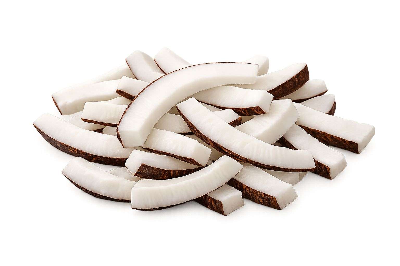 O coco em tiras congelado permite que o ingrediente esteja sempre pronto para uso em diversas receitas, como doces, bolos e recheios.